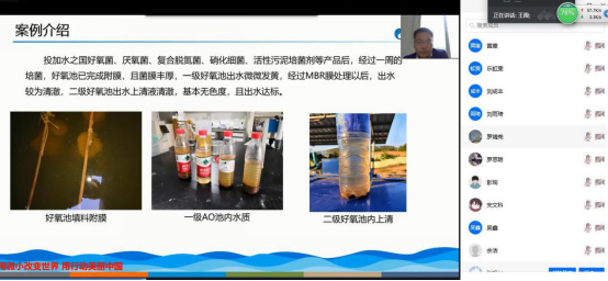 武汉水之国环保科技有限公司创始人吴定心博士为员工讲解了第三部分内容:吴博士从四个方面介绍了生物强化法在一体化设备培菌及污水除氨脱氮方面的应用,内容丰富、详实,不仅从理论上介绍了生物强化法的概念及其工作原理等,同时通过多个案例分析介绍其在一体化设备培菌及污水除氨脱氮方面的应用,为员工们上了生动的一课。最后,吴定心博士还向同学们详细介绍了公司的产品和技术体系,勉励同学们环境科学大有可为。