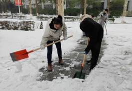本网讯(通讯员 邓雪晴)白雪却嫌春色晚,故穿庭树作飞花。一场大雪给公司披上了一层盛装,为校园又添了别样景色,但道路的积雪让道路变得湿滑,给师生出行带来了诸多不便。为消除安全隐患,保障师生通行顺畅,永利yl23411集团闻“雪”而动,积极开展除冰铲雪保通畅行动,志愿者们用实际行动扫出一条出行安全的“平安路”。
