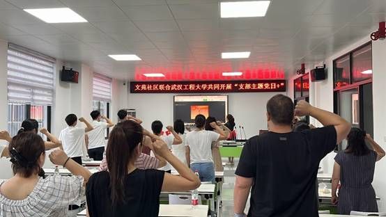“我志愿加入中国共产党……”全体党员重温入党誓词,铿锵有力的誓言显示着全体党员坚定的理想信念。